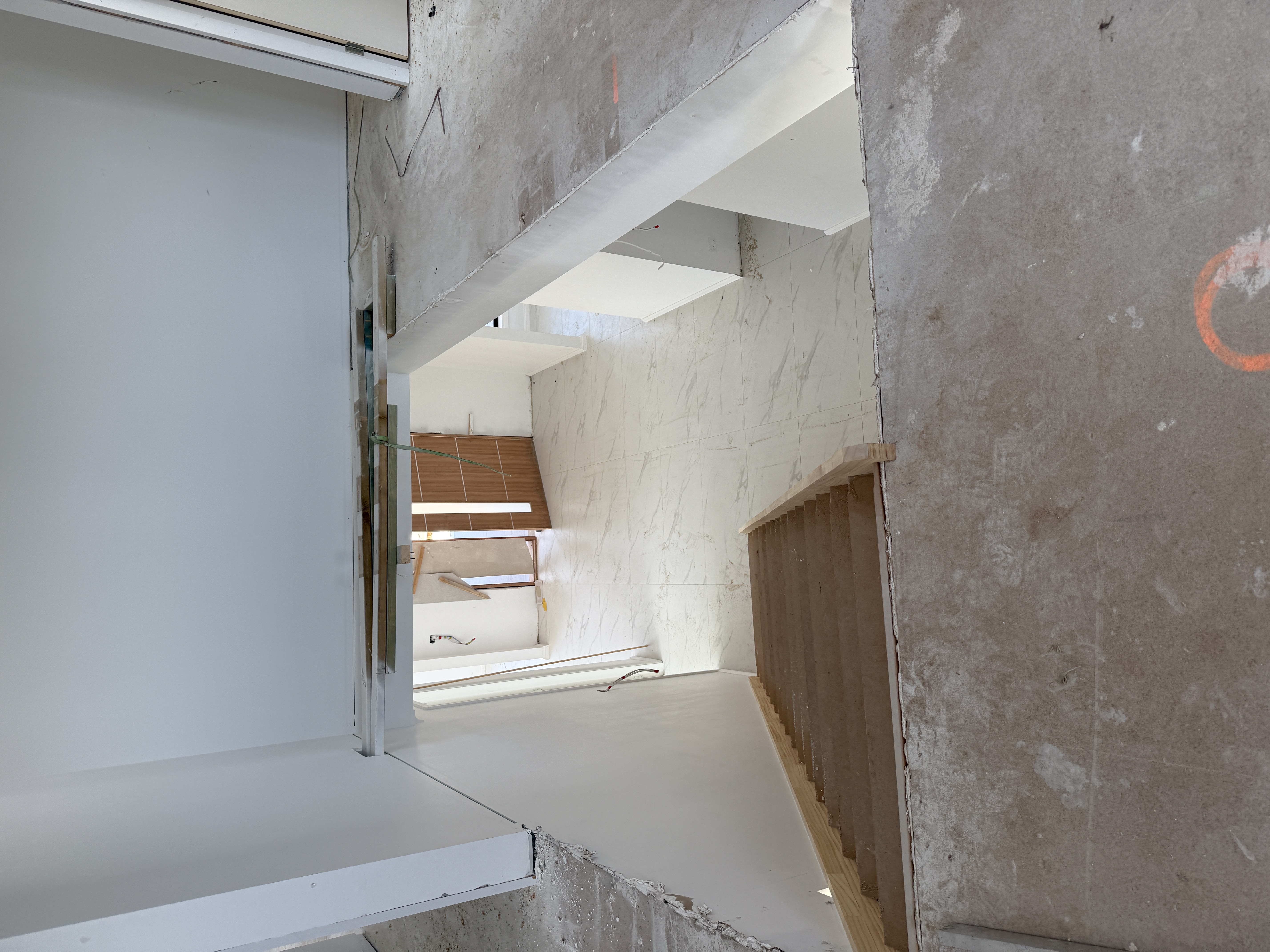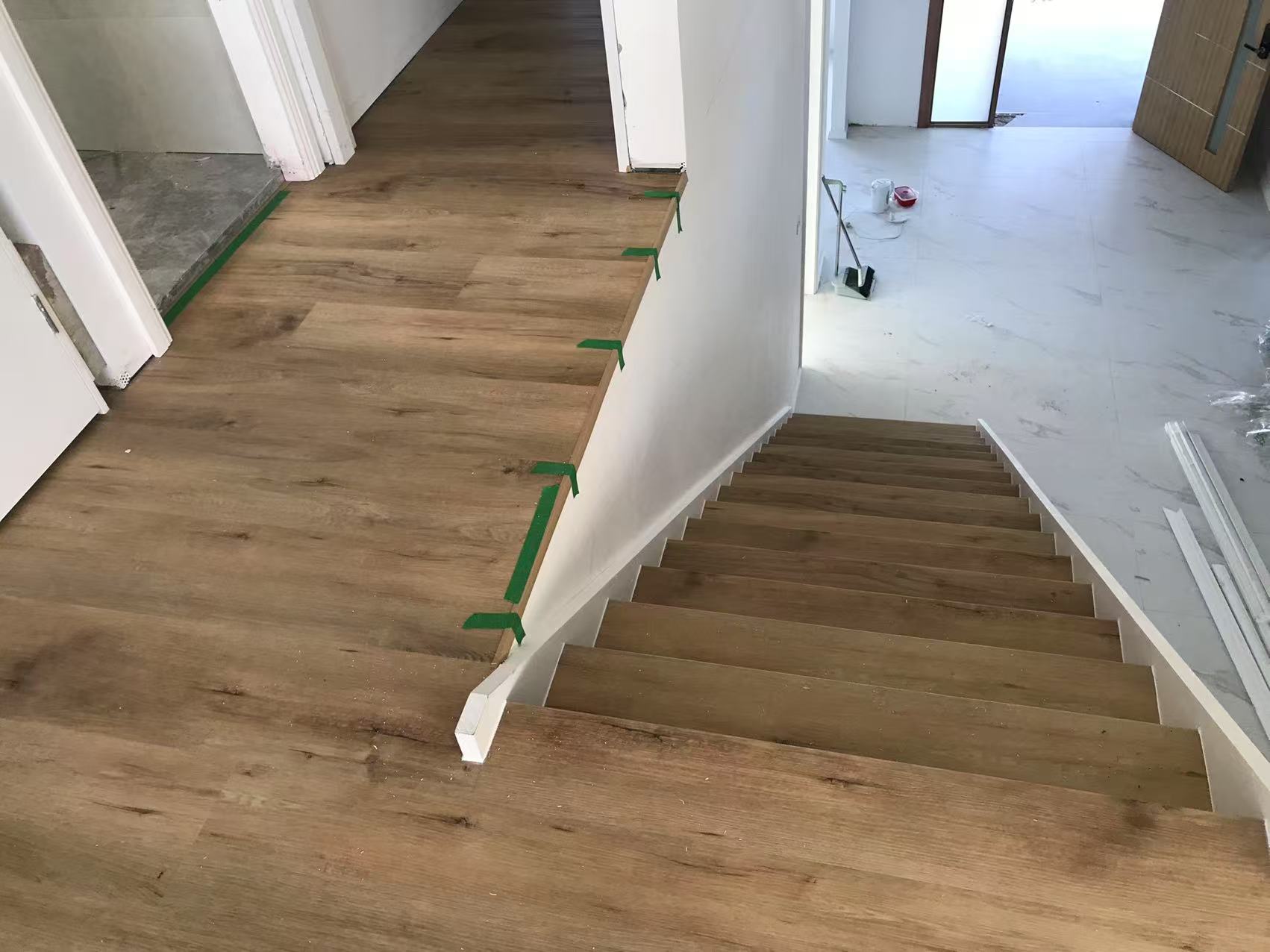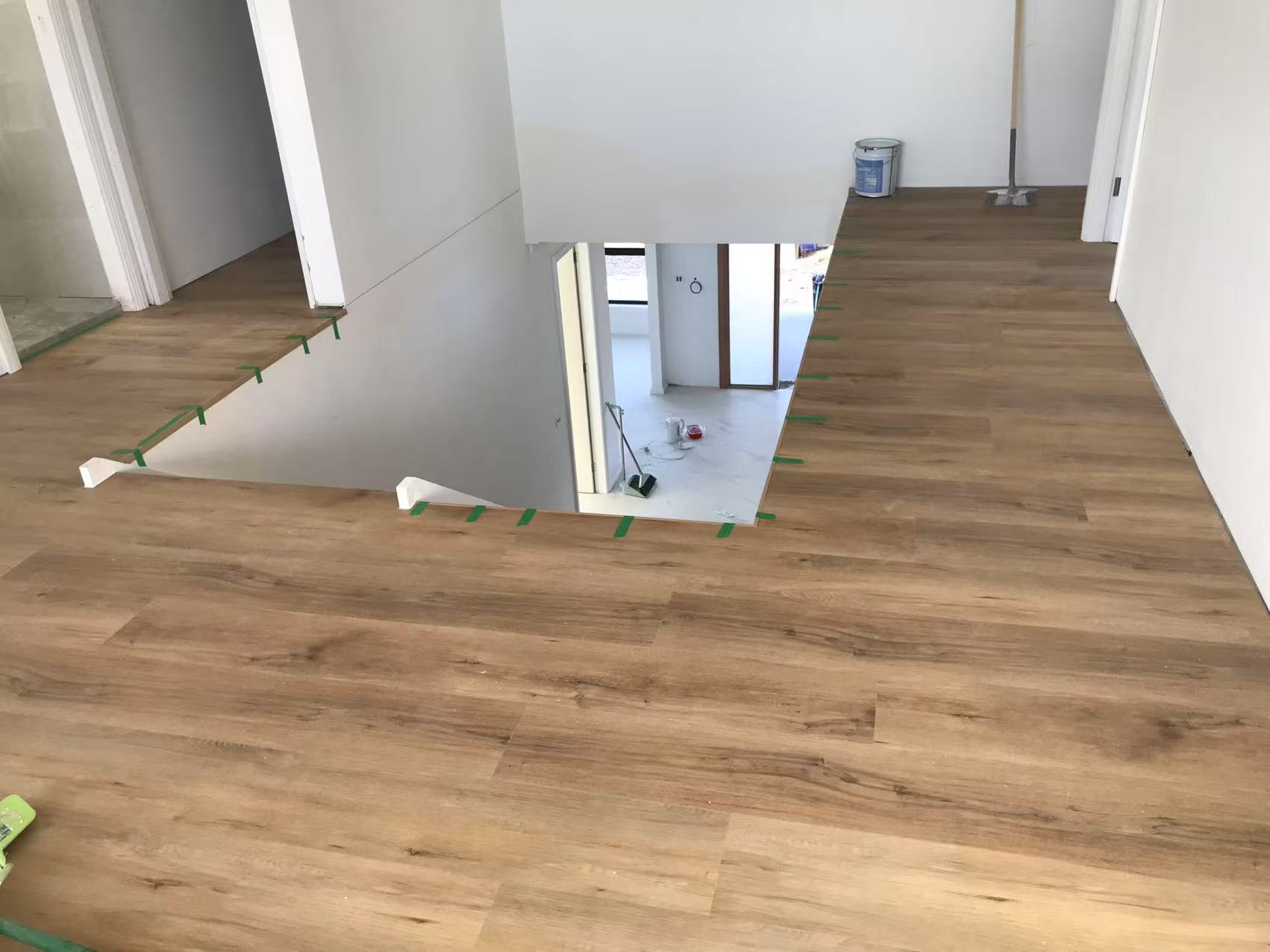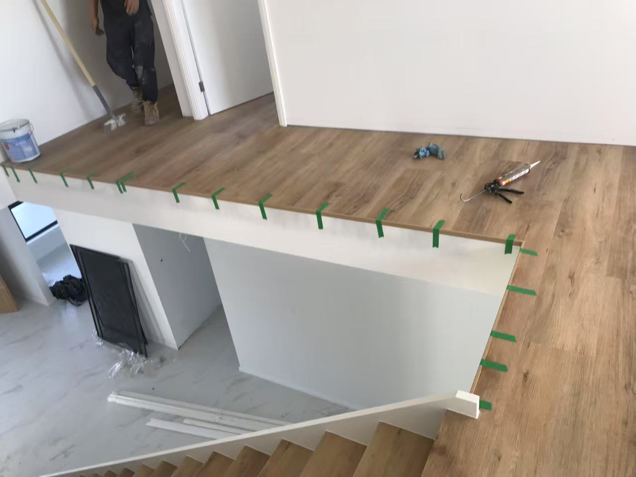 安装Hybrid和一套楼梯,不用打三角条和skirting。楼上围着楼梯的一圈用L条收边。